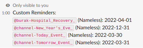 When the time approaches, slackbot will send private reminder messages. private_message