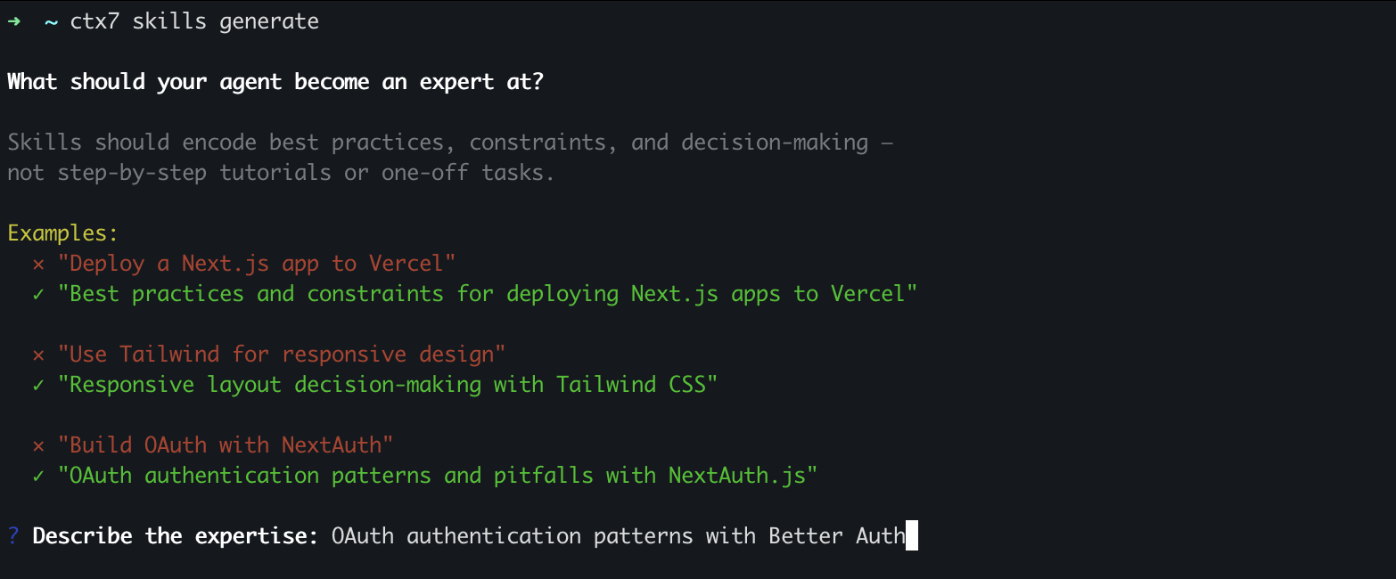 Writing high quality skills for AI coding assistants is harder than it looks. You need to distill documentation into concise, actionable instructions that capture best practices, avoid deprecated patterns, and fit within context limits. We built the Context7 Skill Wizard to do this automatically.