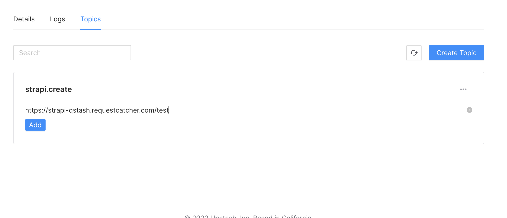 unique endpoint, I chose https://strapi-qstash.requestcatcher.com/test, and